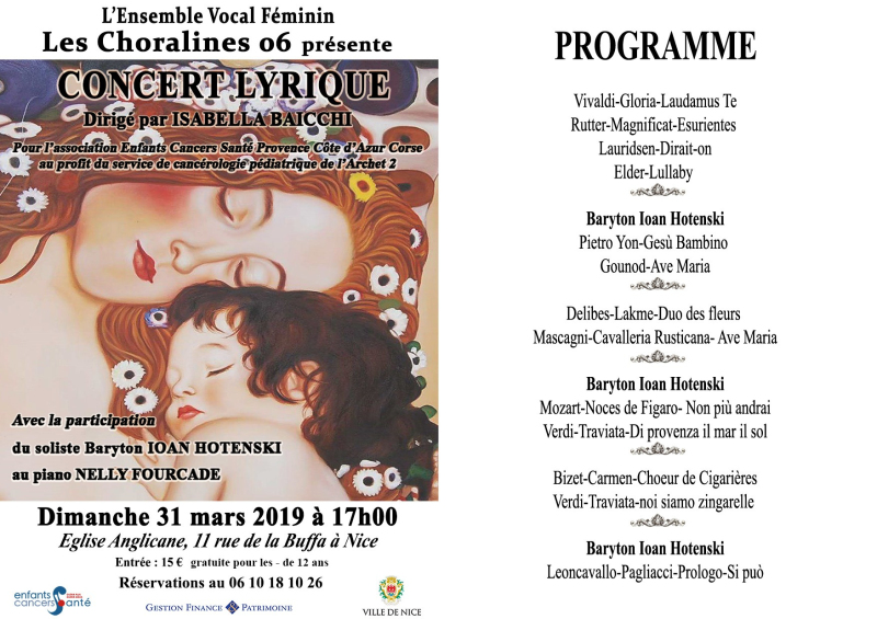 Concert au profit d'Enfants Cancers Santé, le Dimanche 31 mars 2019
