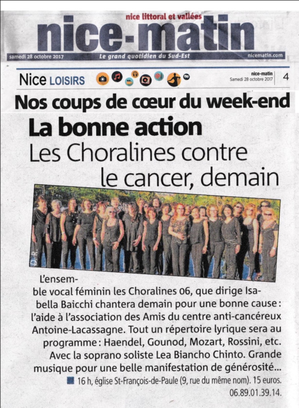 Notre chorale finaliste au grand concours départemental des chorales au Palais Nikaïa